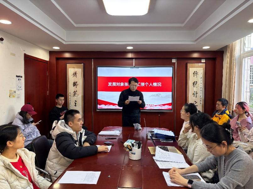 2025年11月19日,博士生党支部于统计学院104会议室召开党员发展大会,党支部书记赵彩屹主持会议。