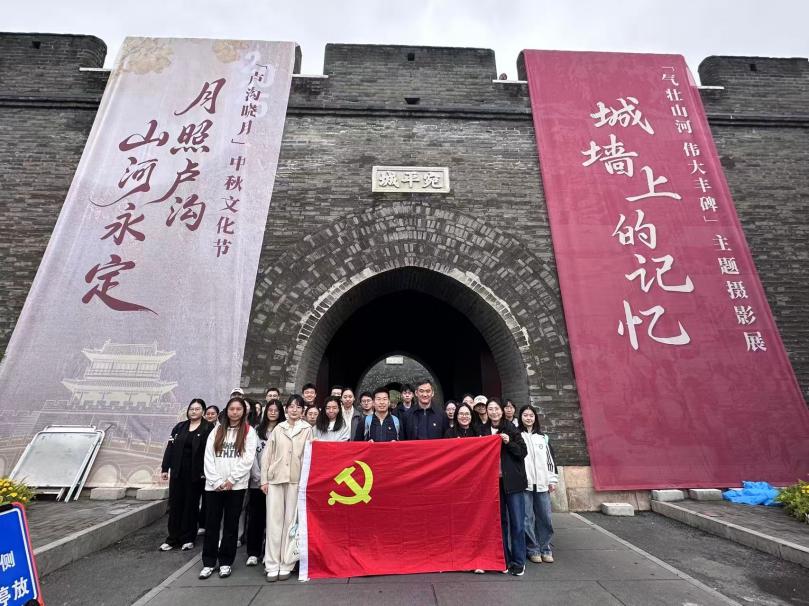 为充分发挥中国人民抗日战争暨世界反法西斯战争胜利80周年纪念活动的育人功能,教育引导广大师生党员深刻感悟伟大抗战精神,自觉肩负强国建设、民族复兴的历史重任,2025年10月11日,我院党委组织师生党员前往赴卢沟桥地区开展红色参观学习活动,让红色基因在实地感悟中代代相传。本次参观学习活动由学院党委书记金蛟带队。首先,师生党员们怀着肃穆的心情抵达宛平城。作为北京西南的重要门户,宛平城曾是抗日战争初期的关键战场,城墙上留存的弹痕至今仍清晰可见,无声诉说着那段烽火连天的岁月,同志们在此驻足良久,通过实地参观,切实感受到艰苦卓绝的抗战历程与当今和平的来之不易。