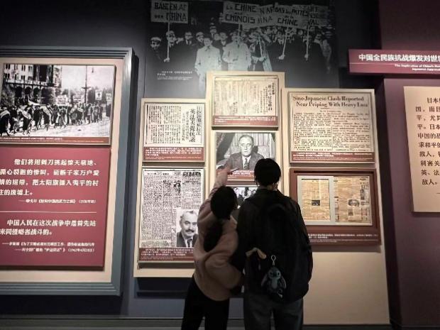 随后,师生党员们走进中国人民抗日战争纪念馆。从“九一八事变”到“七七事变”,从平型关大捷到百团大战,每一件历史文物、每一帧影像资料都在诉说“天下兴亡、匹夫有责”的爱国情怀。在专业讲解员的引导下,大家认真观看每一件展品、仔细阅读每一段文字,不时停下脚步交流感悟。
