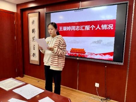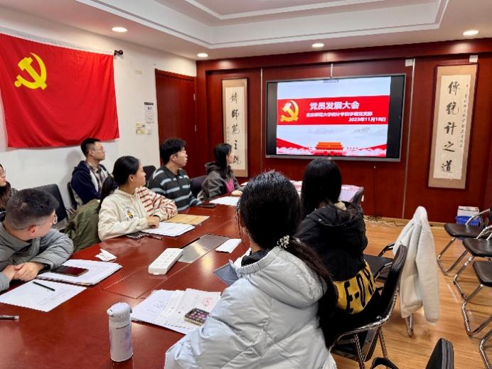 2025年11月18日,学硕党支部于学院104会议室召开党员发展大会。党支部书记罗雅琪主持会议。