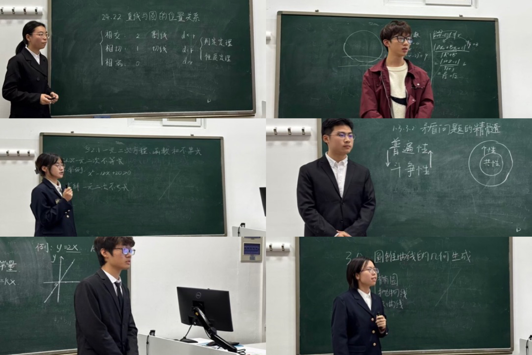 本次比赛共有12名本科生同学参赛,授课学科包含数学、语文、政治,选手们逐一进行了八分钟课堂讲授的展示。选手们精彩地呈现了自己在课堂教学、教姿教态、课程设计等多个方面的精心设计,清晰拆解课堂设计要点、学科教学方法与互动技巧,充分展现了我院学子在教学实践方面的综合素质与实践能力。