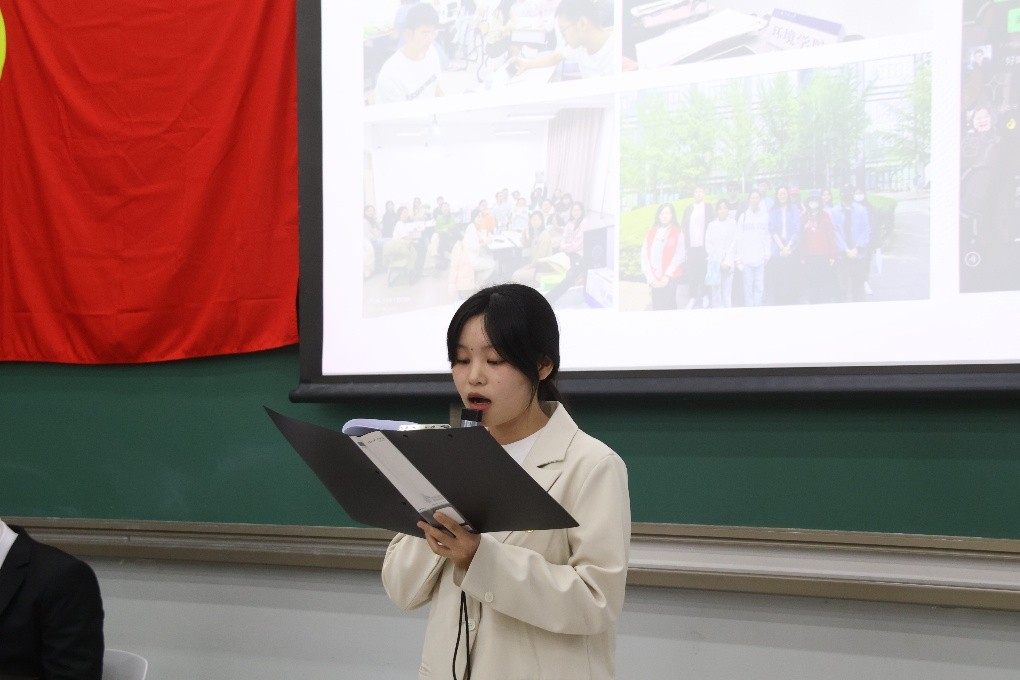 最后,大会秘书长孙留萍宣读选举结果,进行总结致辞,并与新老学生干部合影留念。她肯定了过去一年里团委、学生会、研究生会各组织所做出的努力,强调这些努力不仅推动学院的各项工作,也为同学们的成长和发展提供了良好的平台。同时,她鼓励新一届学生干部要继续保持这种团结奋进的精神,在新一年工作中,继续秉持责任与使命,勇于探索、积极创新,为学院的未来发展贡献更多智慧和力量。