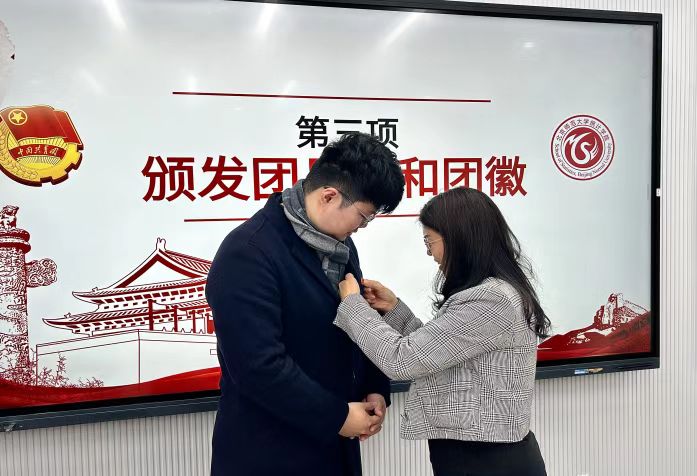 随后,孙老师勉励新团员们牢记使命,不负团徽荣光,谱写无悔青春。同时,她提出三个“青春任务”:第一,定位要“准”,把个人梦想融入国家发展的洪流,让青春在奋斗中绽放光彩。第二,能力要“硬”,珍惜时光,不断提高自己的学术水平和实践本领的“硬核”竞争力。第三,行动要“亮”,要主动担当,成为名副其实的先进分子。